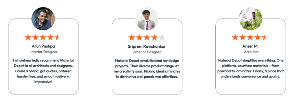 Welcome to Material Depot, our online platform offers a wide range of products, from Tiles and Plywood to Laminates, Sanitaryware, and Hardware, making it easy and convenient for you to find everything you need in one place.